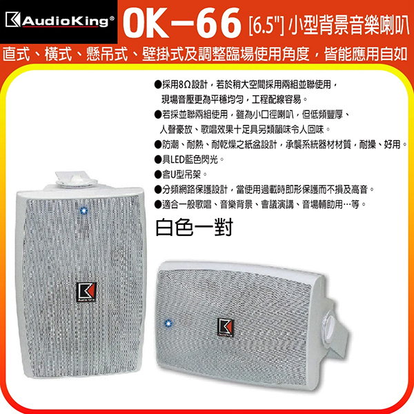 Audioking OK-66 白色 (6.5吋小型背景音樂喇叭一對)