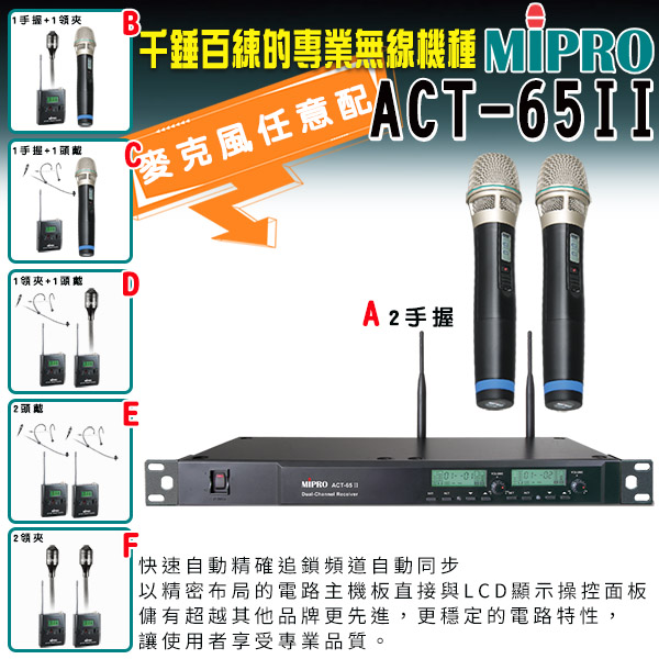 MIPRO ACT-65II 雙頻道自動選訊無線麥克風 (ACT-32H/MU90配件六擇一)