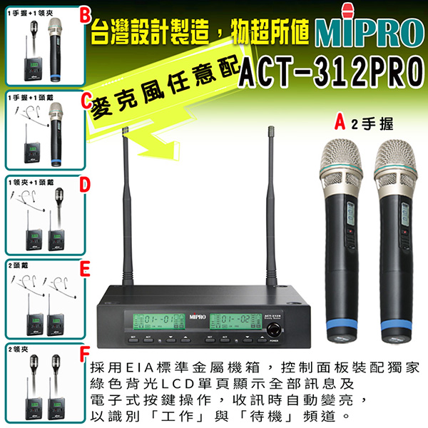 【MIPRO】ACT-312PRO 半U雙頻道自動選訊無線麥克風 (ACT-32H/MU80配件六擇一)