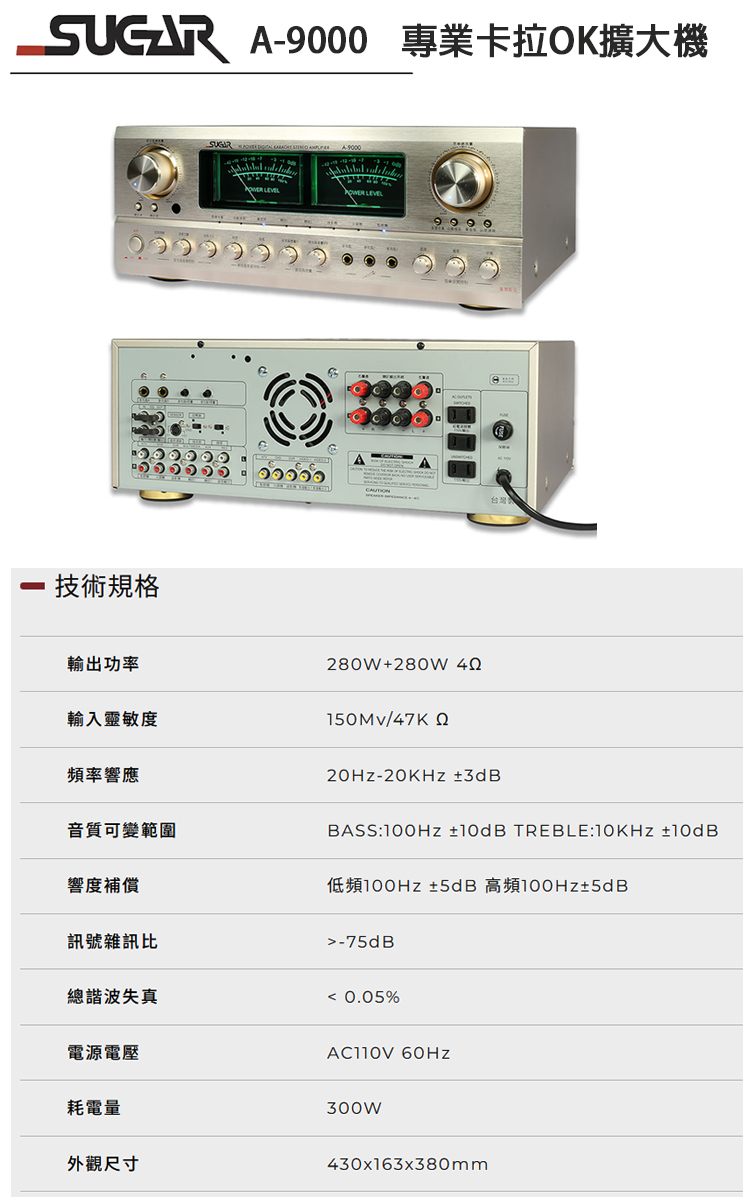 永悅音響 SUGARA-9000 數位迴音卡拉ok綜合擴大機 (香檳金) 全新公司貨 (免運)