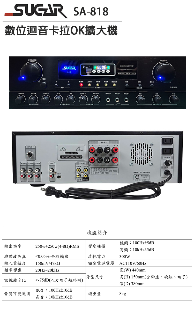永悅音響 SUGAR SA-818 數位迴音卡拉ok綜合擴大機 全新公司貨