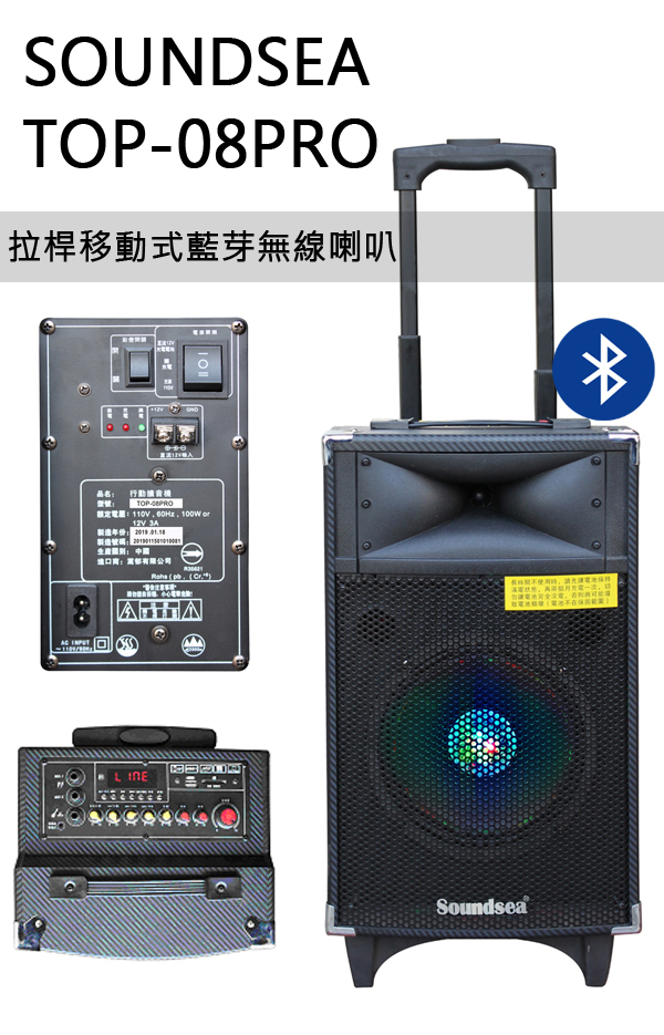 永悅音響SOUNDSEA TOP-08PRO行動式藍牙8吋音箱 贈有線麥克風一隻 全新公司貨