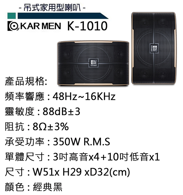 KARMEN K-1010 卡拉OK 吊式喇叭(一對)