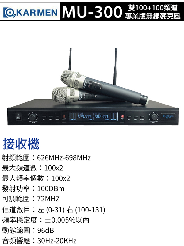 KAR MEN MU-300 雙100+100頻道專業版無線麥克風
