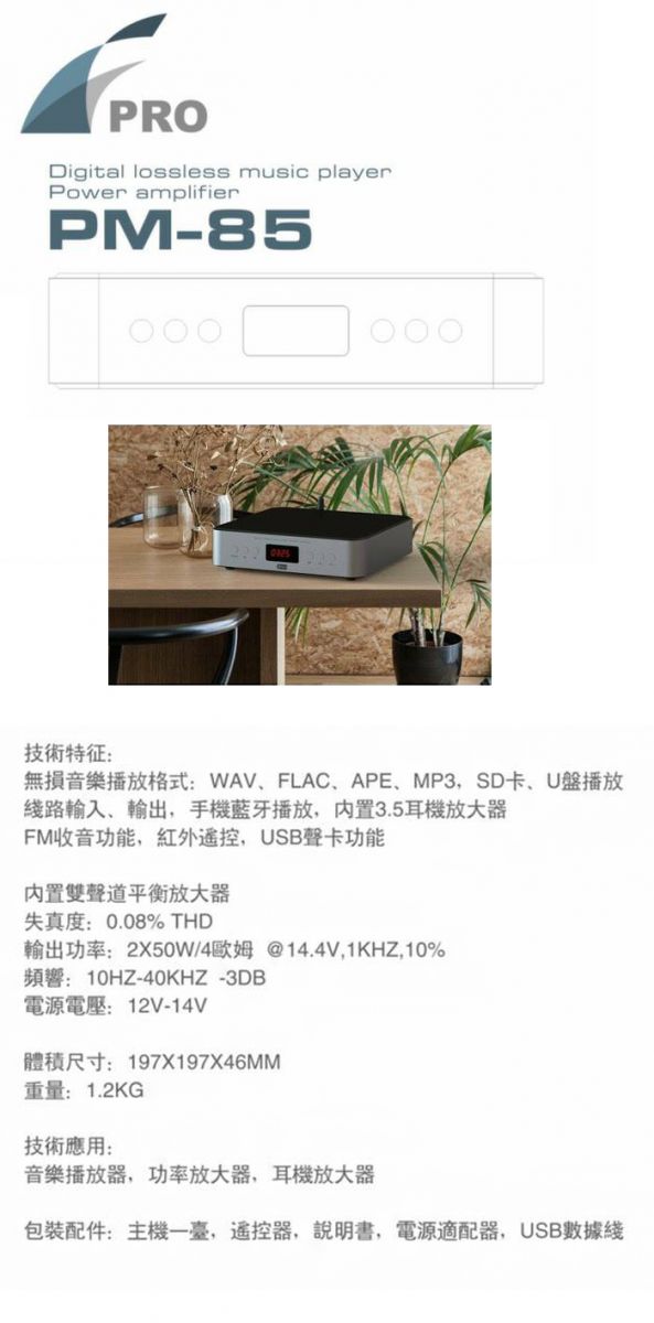 永悅音響 FPRO PM-85 立體聲(藍芽)擴大機 全新公司貨 (免運)
