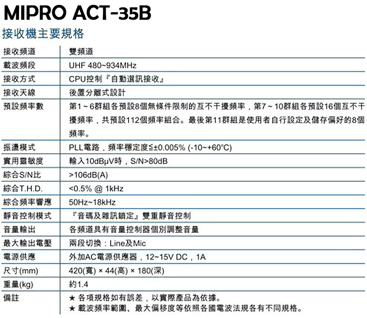 永悅音響 MIPRO ACT-35B 雙頻道自動選訊無線麥克風(發射器2組+領夾式2組)公司貨 (免運)