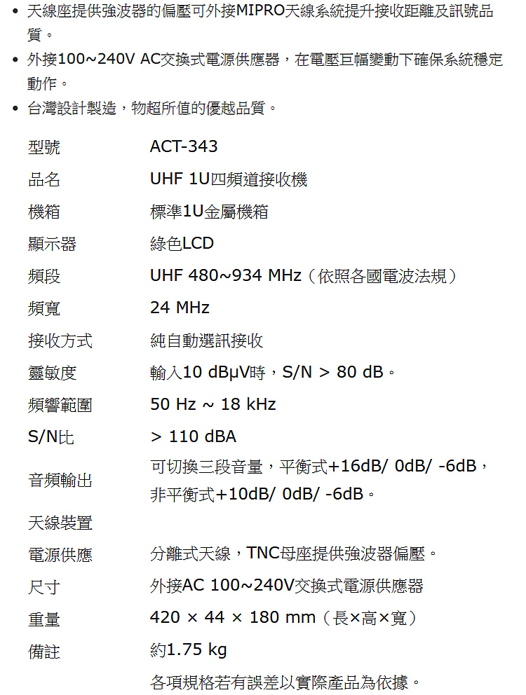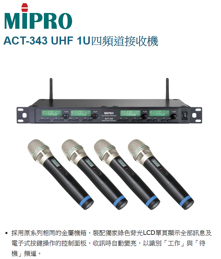 永悅音響 MIPRO ACT-343(MU-80音頭)手持4支無線麥克風組全新公司貨 (免運)