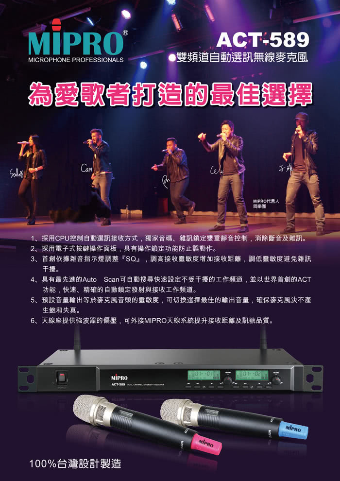 永悅音響 MIPRO ACT-589(MU-90音頭/ACT-52H管身)手持2支無線麥克風組 贈三項好禮 全新公司貨