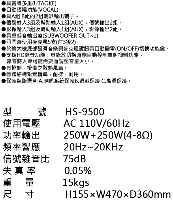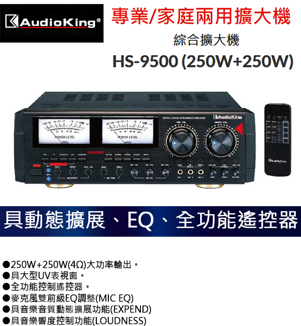 Audioking HS-9500(250W+250W 家庭專業兩用卡拉OK混音擴大機)