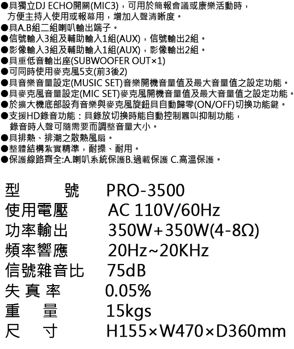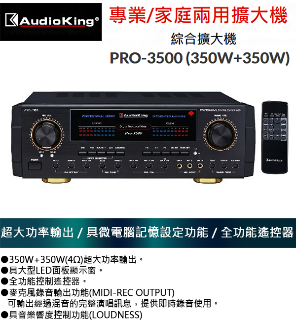 Audiokin PRO-3500(350W+350W 專業卡拉OK音樂歌唱專業兩用擴大機)