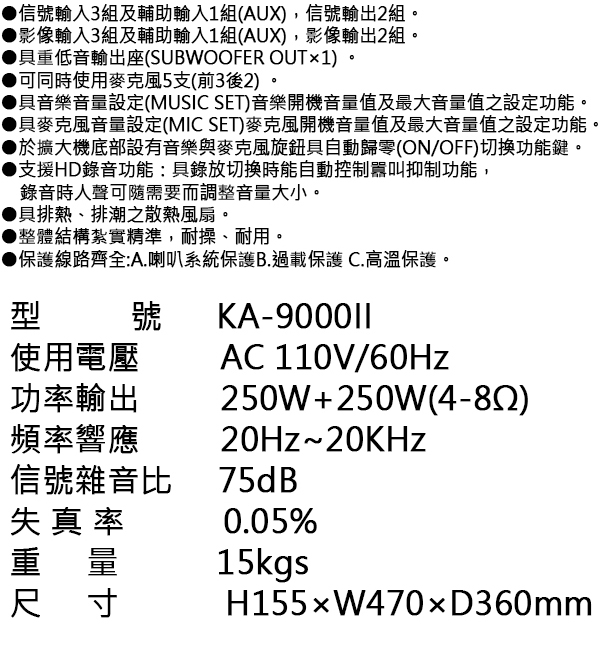 Audioking KA-9000II(250W+250W 專業卡拉OK音樂歌唱專業兩用擴大機)