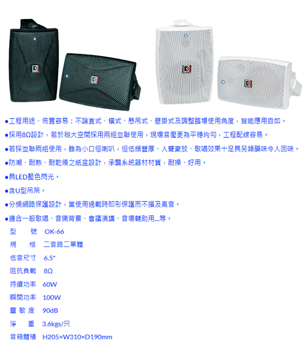 Audioking OK-66 白色 (6.5吋小型背景音樂喇叭一對)
