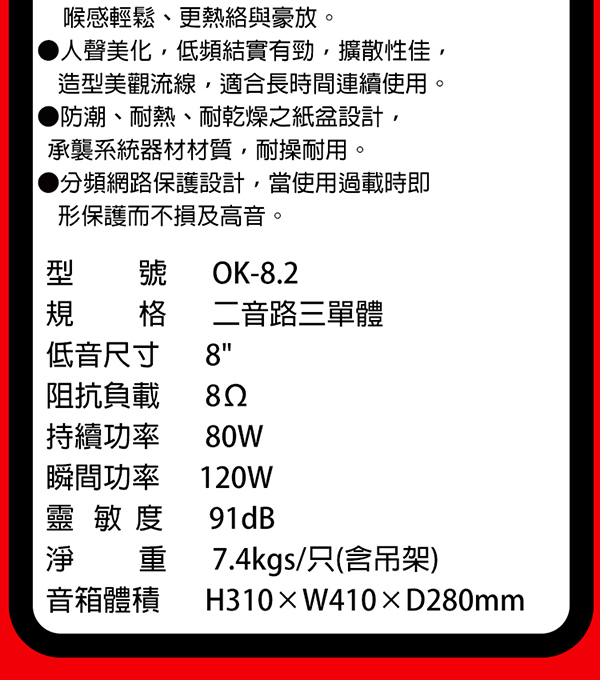 Audioking OK-8.2 白色一對(8吋懸吊式喇叭含腳架)