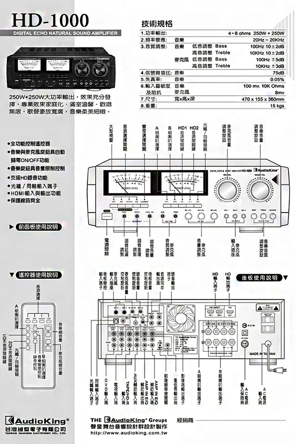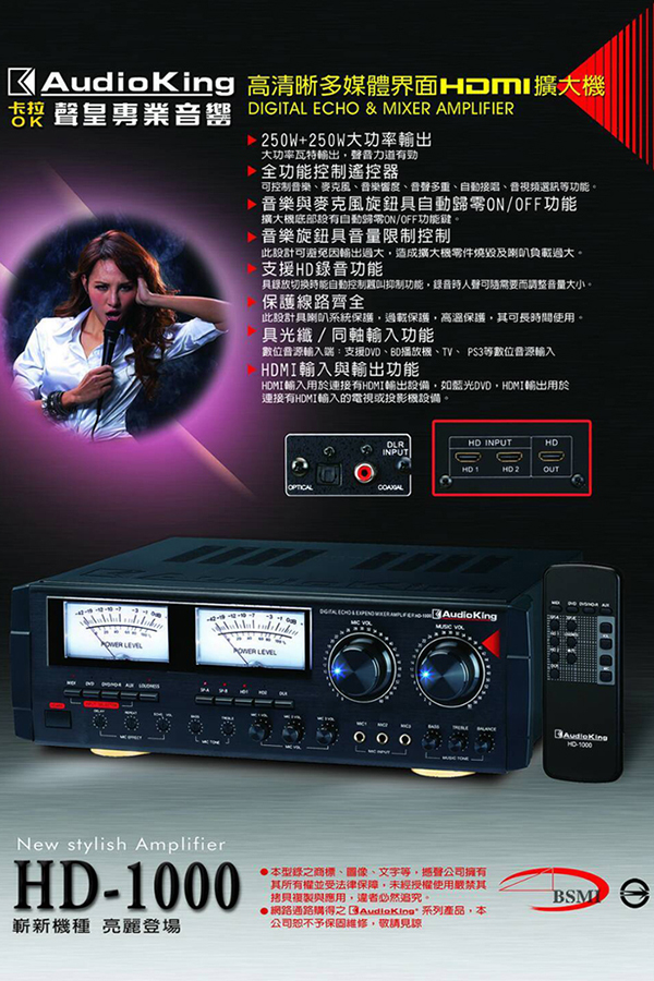 Audioking HD-1000 專業綜合擴大機(卡拉OK擴大機/HDMI/光纖同軸)