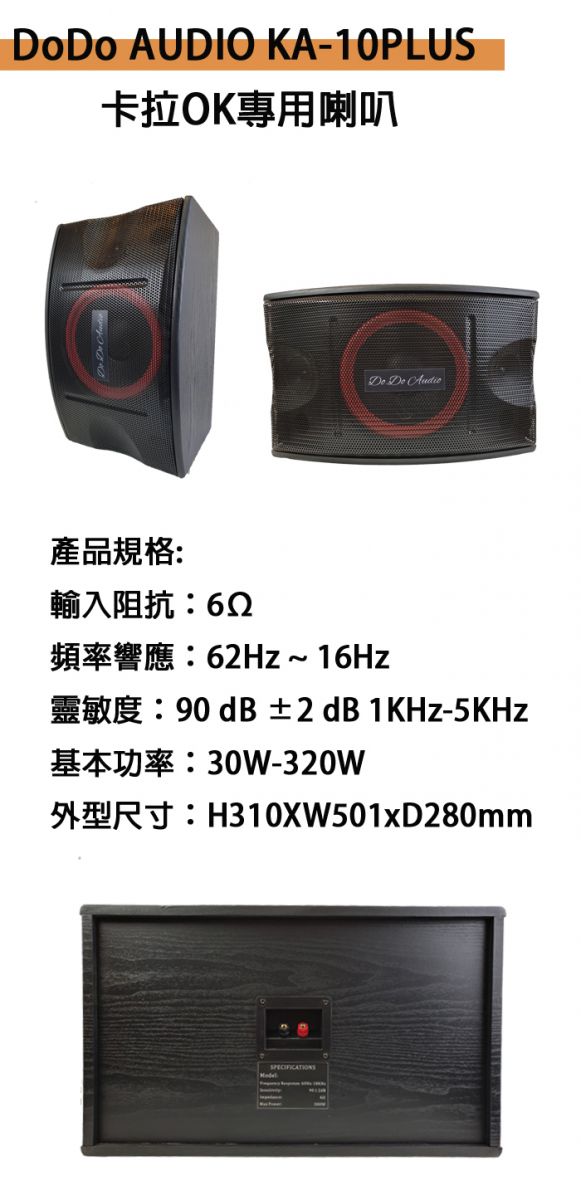 永悅音響 DoDo AUDIO KA-10PLUS懸吊式/立放/平放式卡拉OK專用喇叭(對)(免運)
