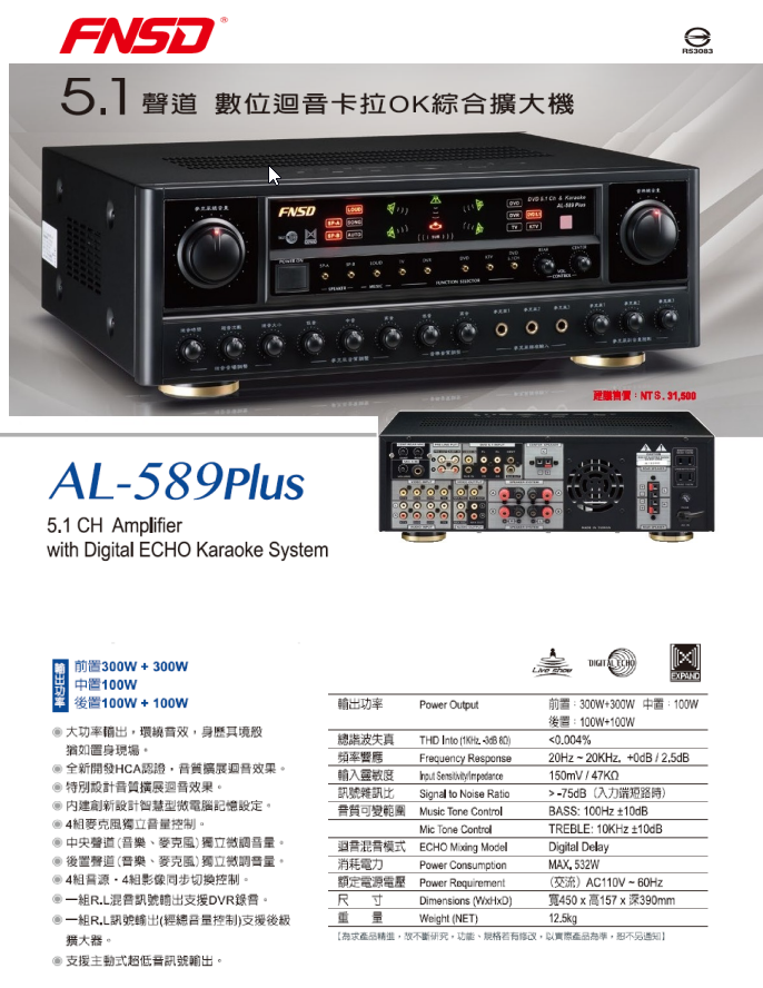 永悅音響 FNSD AL-589 PLUS 5.1聲道綜合歌唱擴大機 華成電子製造 贈三項好禮 全新公司貨
