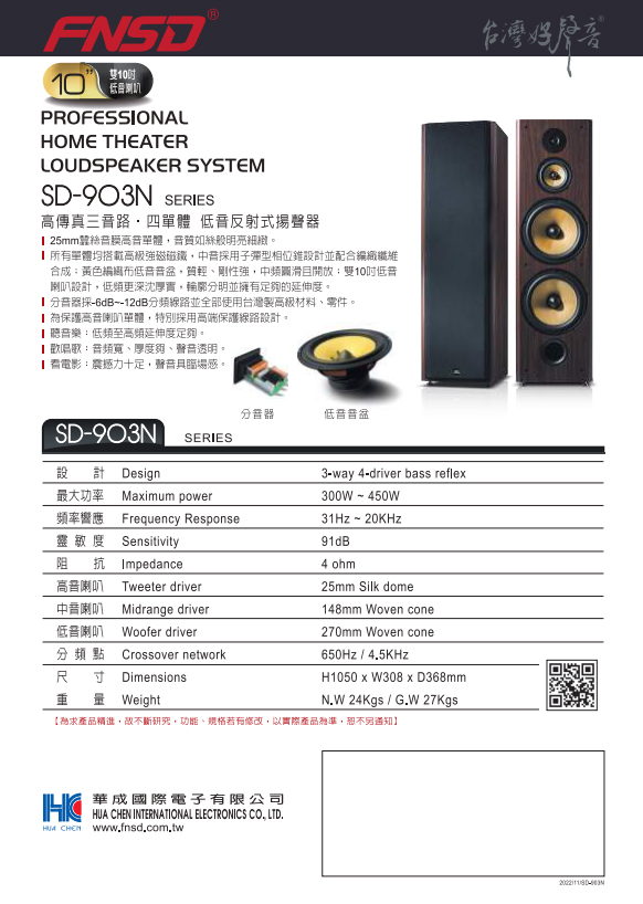 永悅音響 FNSD SD-903N 雙10吋落地式低音喇叭 (對) 全新公司貨