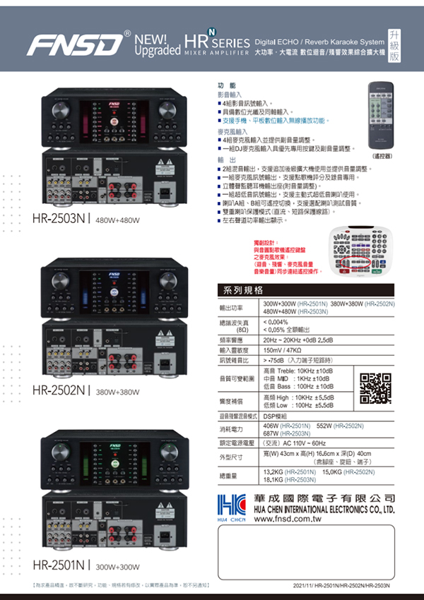 永悅音響 FNSD HR-2502N 數位迴音/殘響效果綜合擴大機 全新公司貨