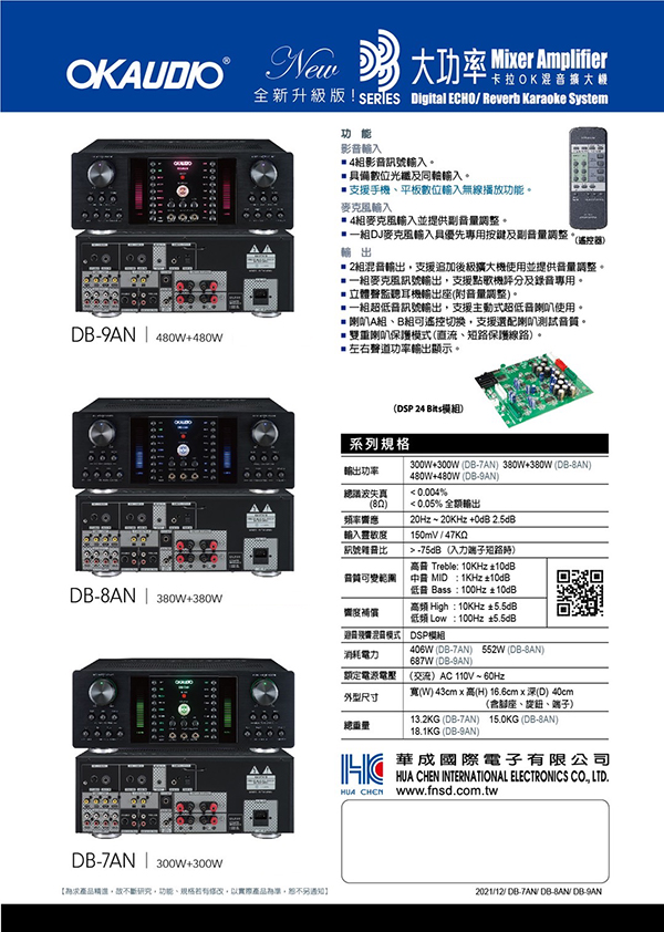 OKAUDIO DB-7AN(華成電子製造 升級版 數位迴音/殘響效果綜合擴大機)