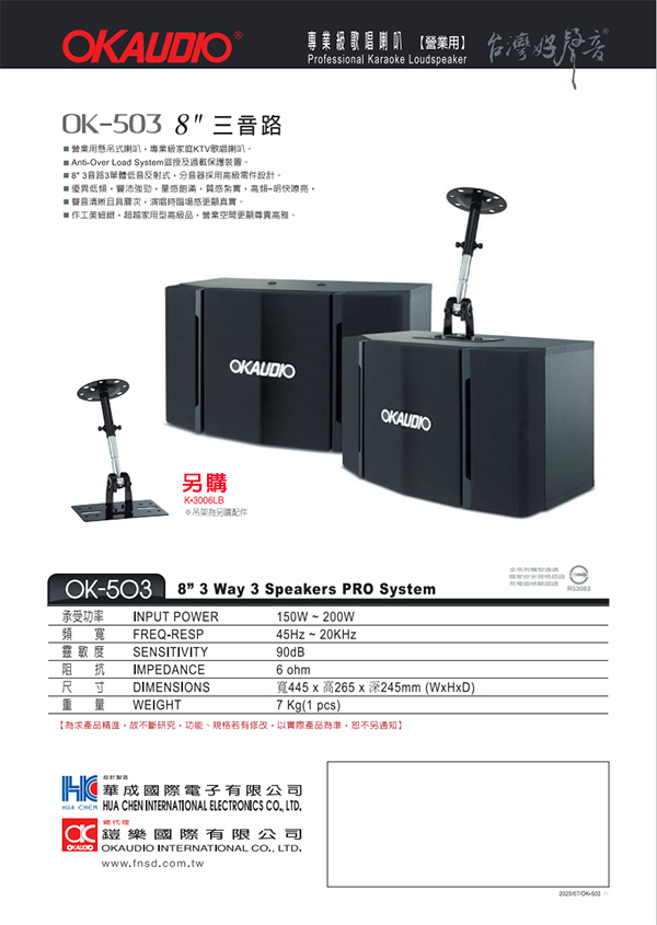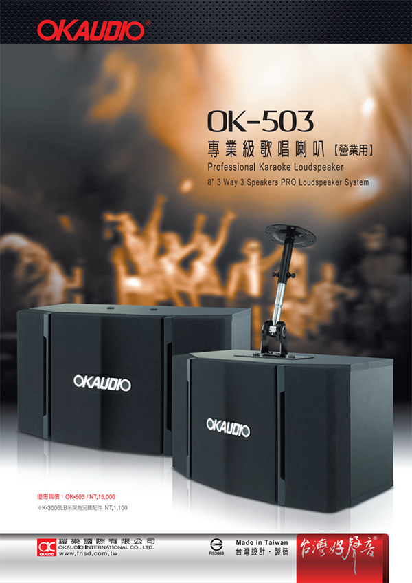 OKAUDIO OK-503(華成電子FNSD 8吋三音路三單體 劇院歌唱卡拉OK喇叭)