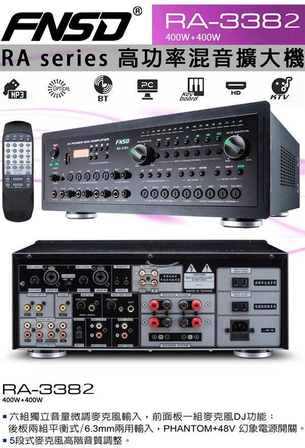 FNSD RA-3382(400W+400W高功率混音擴大機)