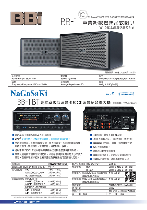 NaGaSaKi BB1 BB-1(10吋2音路3單體低音反射式 專業級歌唱懸吊式喇叭)