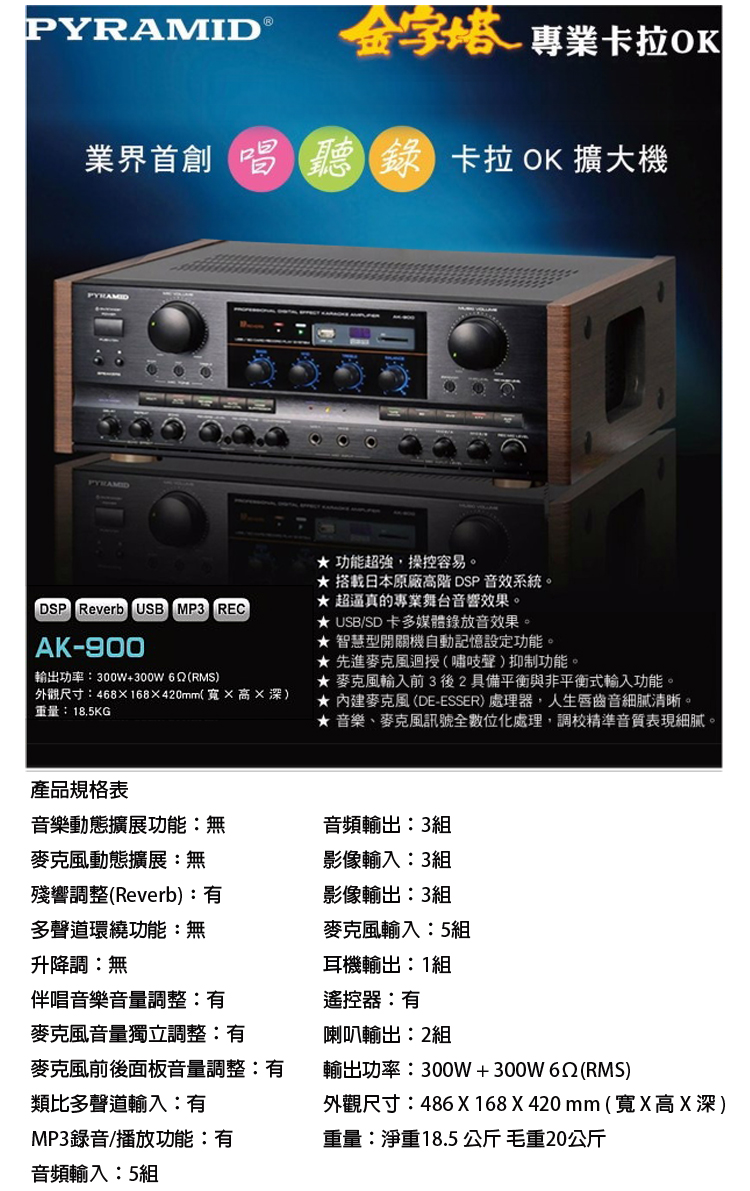 永悅音響 PYRAMID金字塔 AK-900 數位迴音卡拉OK綜合擴大機 贈三項好禮 全新公司貨