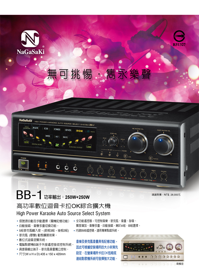 永悅音響 NaGaSaKi BB-1 數位迴音卡拉OK綜合擴大機全新公司貨 (免運)