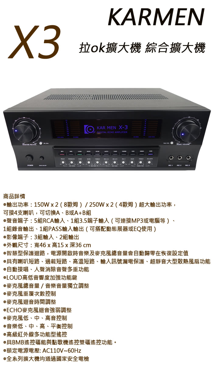 永悅音響 KARMEN X3 數位迴音卡拉OK綜合擴大機 全新公司貨 (免運)