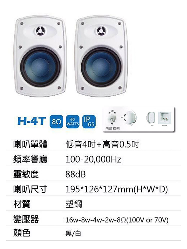 永悅音響 Poise H-4T 多用途喇叭 (白/支) 全新公司貨 (免運)