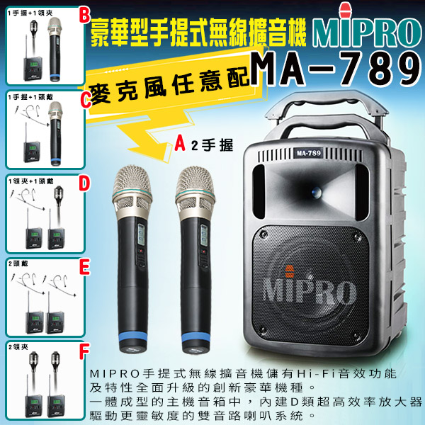 永悅音響 MIPRO MA-789 雙頻道無線擴音機 手握+頭戴式+發射器 贈保護套+麥克風收納包 全新公司貨