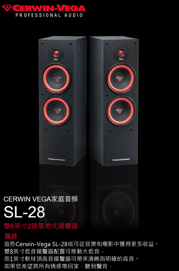 永悅音響CERWIN-VEGA SL-28(對)雙8吋三音路落地型喇叭全新公司貨(免運)