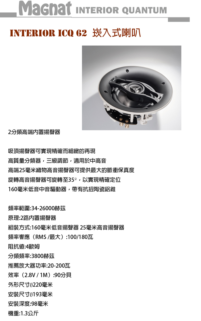 永悅音響 Magnat Interior ICQ 62 崁入式喇叭(一支)全新公司貨歡迎+即時通詢問(免運)
