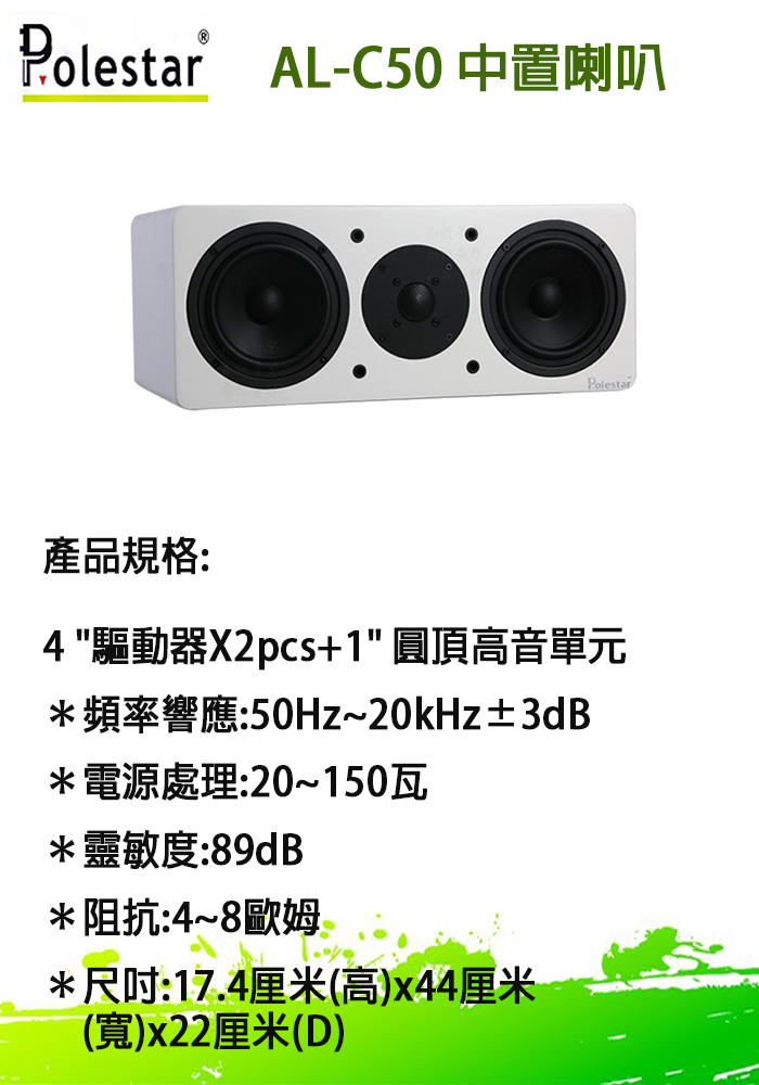 永悅音響 Polestar AL-C50(白)中置喇叭全新公司貨歡迎+即時通詢問(免運)