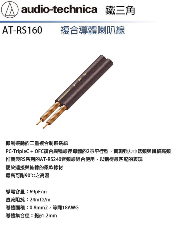 永悅音響audio technica AT-RS160喇叭線(10M) 日本原裝 歡迎+即時通詢問(免運)